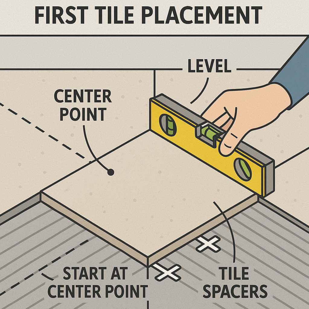 ![]() Step 4: Mix Mortar and Apply to SubfloorMix the Mortar Spread the Mortar Work in Small Sections Pro Tip: ![]() Step 5: Lay the First TilesStarting properly will set the tone for the entire project. Begin at Your Layout Center Point Set the First Tile Use Tile Spacers Check for Level Pro Tip: ![]() Step 6: Cutting Tiles to FitAccurate cutting is key for a polished, professional-looking finish. Measure and Mark Choose the Right Tool