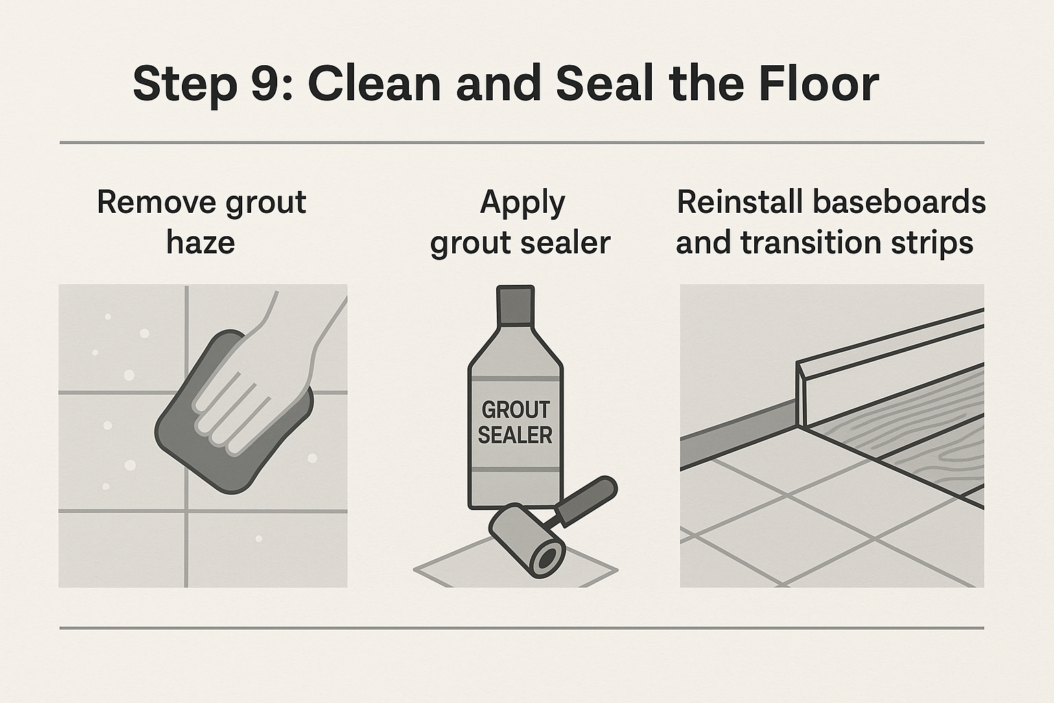 ![]() Step 9: Clean and Seal the FloorRemove Grout Haze Apply Grout Sealer Reinstall Baseboards and Transition Strips ![]() DIY vs. Professional Tile InstallationWhile installing tile flooring yourself can save money, it’s not always the right choice for every project. Here’s how to decide if DIY or hiring a pro is best for you. DIY Pros